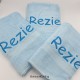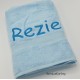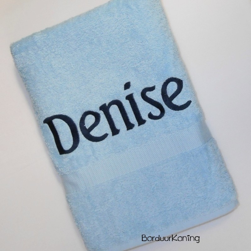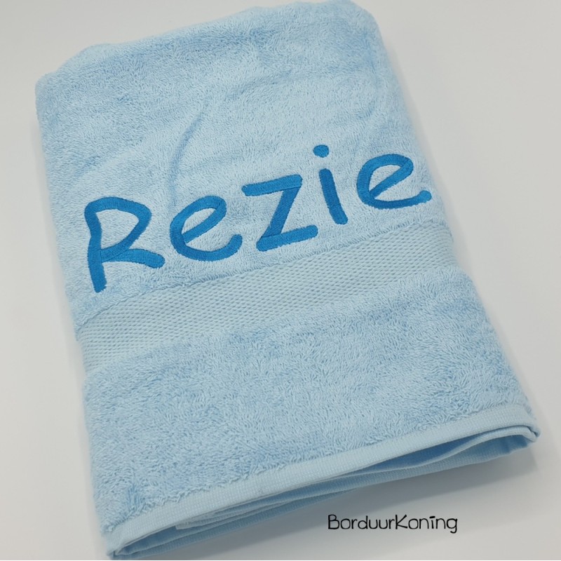 Douchelaken blauw afmeting 70 x 140 cm, inclusief borduurwerk (1 regel).