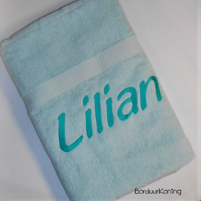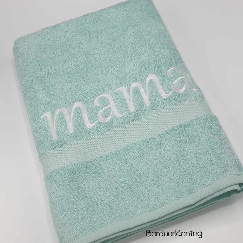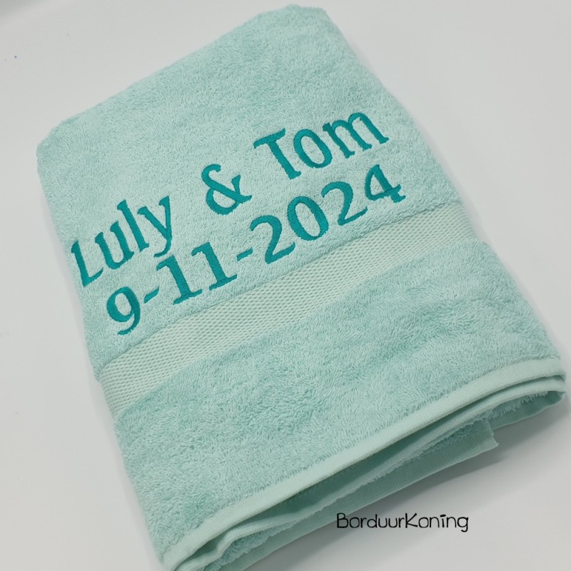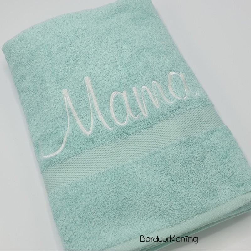 Douchelaken mint, afmeting 70 x 140 cm, inclusief borduurwerk (1 regel).
