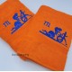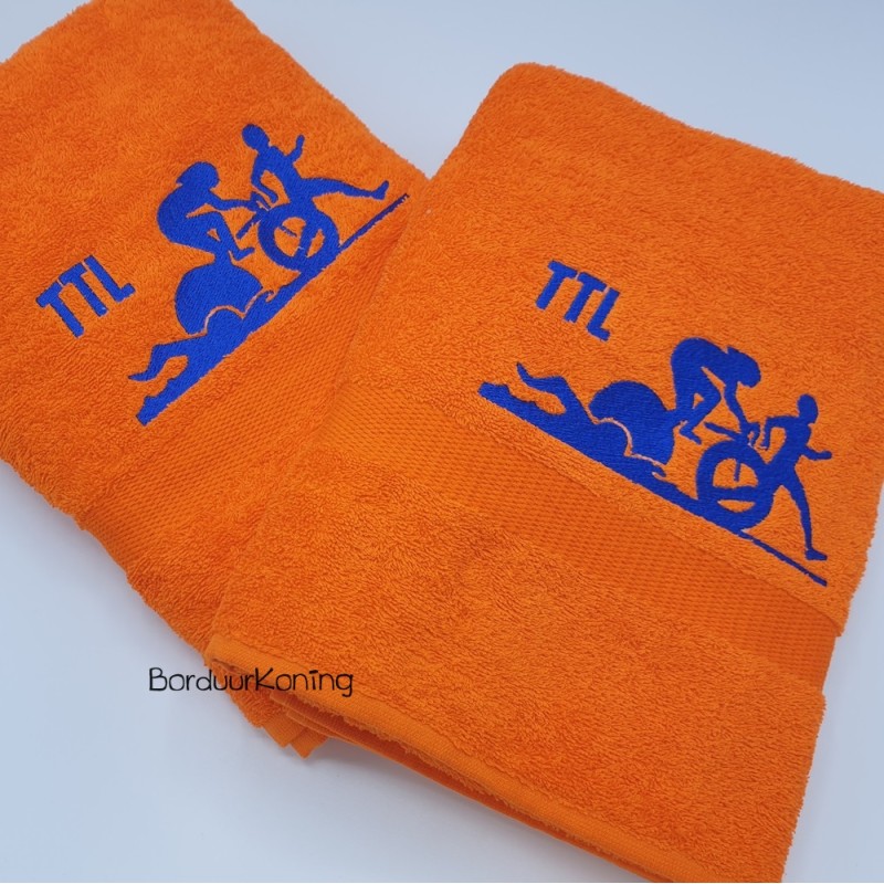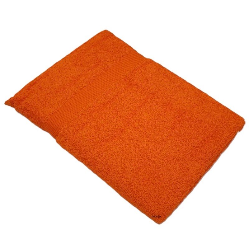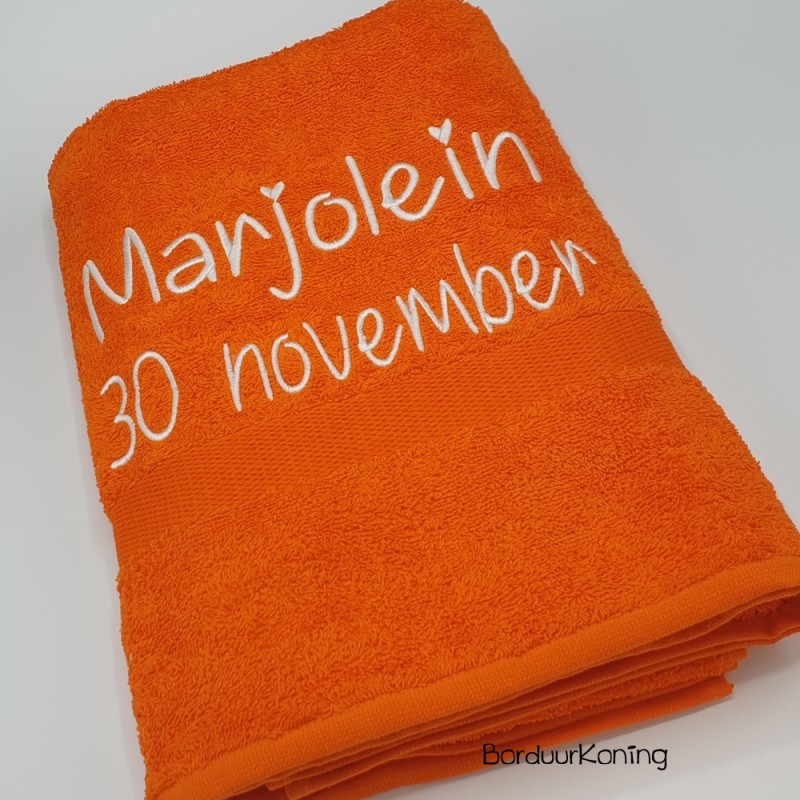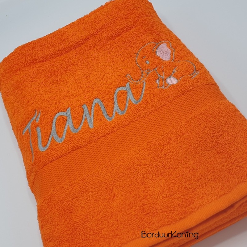 Douchelaken oranje, afmeting 70 x 140 cm, inclusief borduurwerk (1 regel).