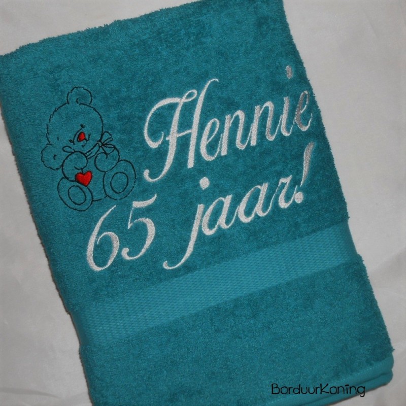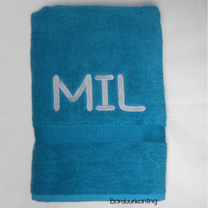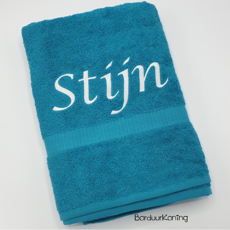 Douchelaken pertol, afmeting 70 x 140 cm, inclusief borduurwerk (1 regel).