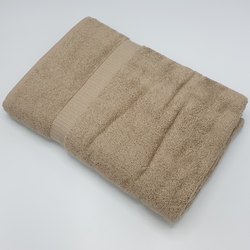 Douchelaken taupe, afmeting 70 x 140 cm, inclusief borduurwerk (1 regel).