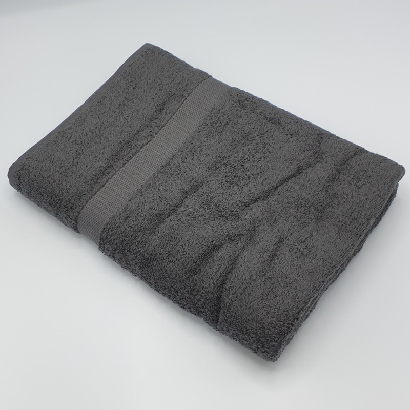 Douchelaken donkergrijs, afmeting 70 x 140 cm, inclusief borduurwerk (1 regel).