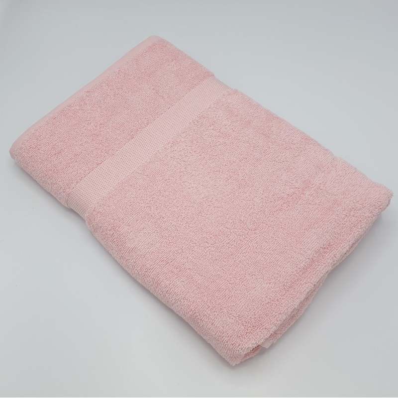 Douchelaken roze, afmeting 70 x 140 cm, inclusief borduurwerk (1 regel).