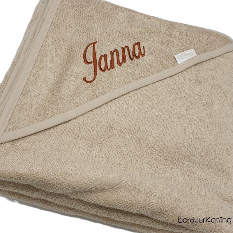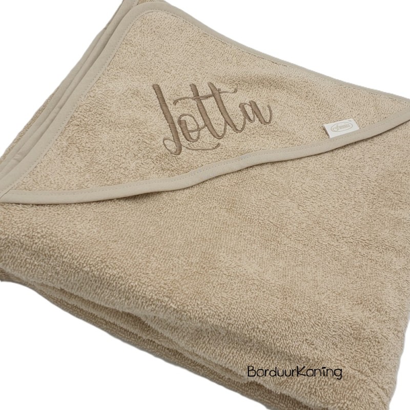 Badcape beige afmeting 100 x 100 cm losse verkoop of met borduurwerk.