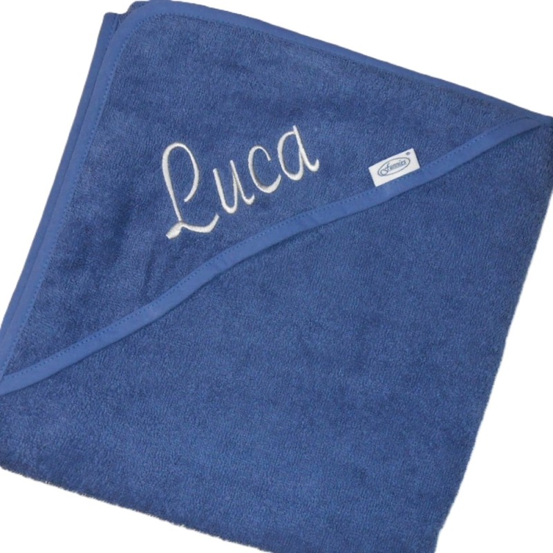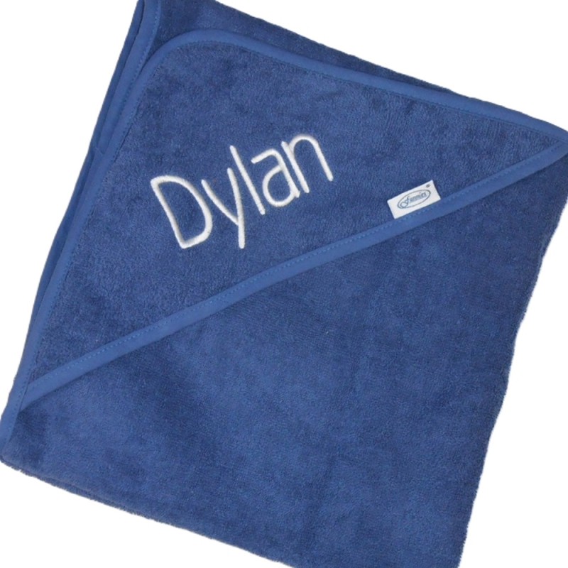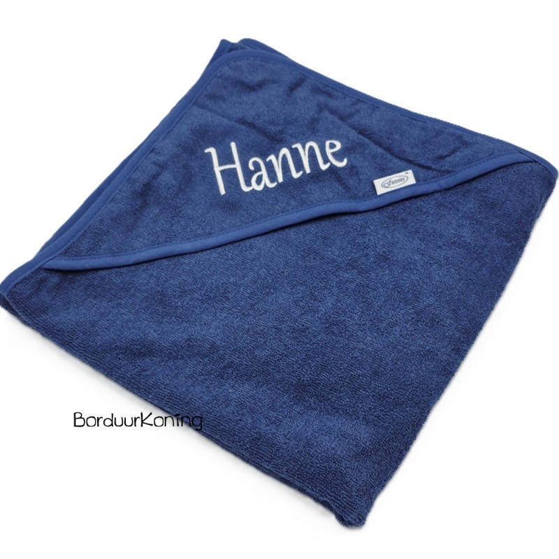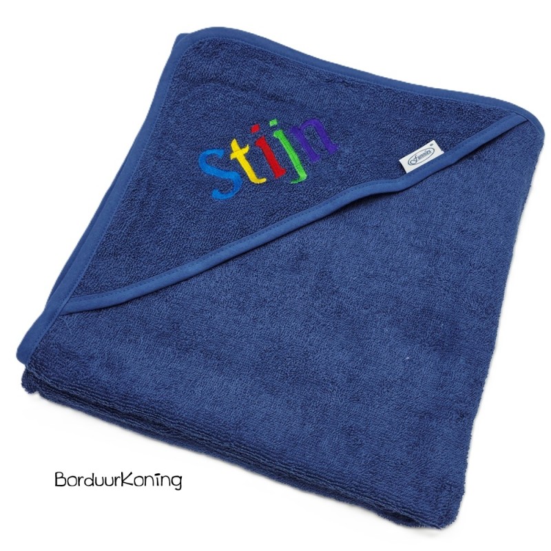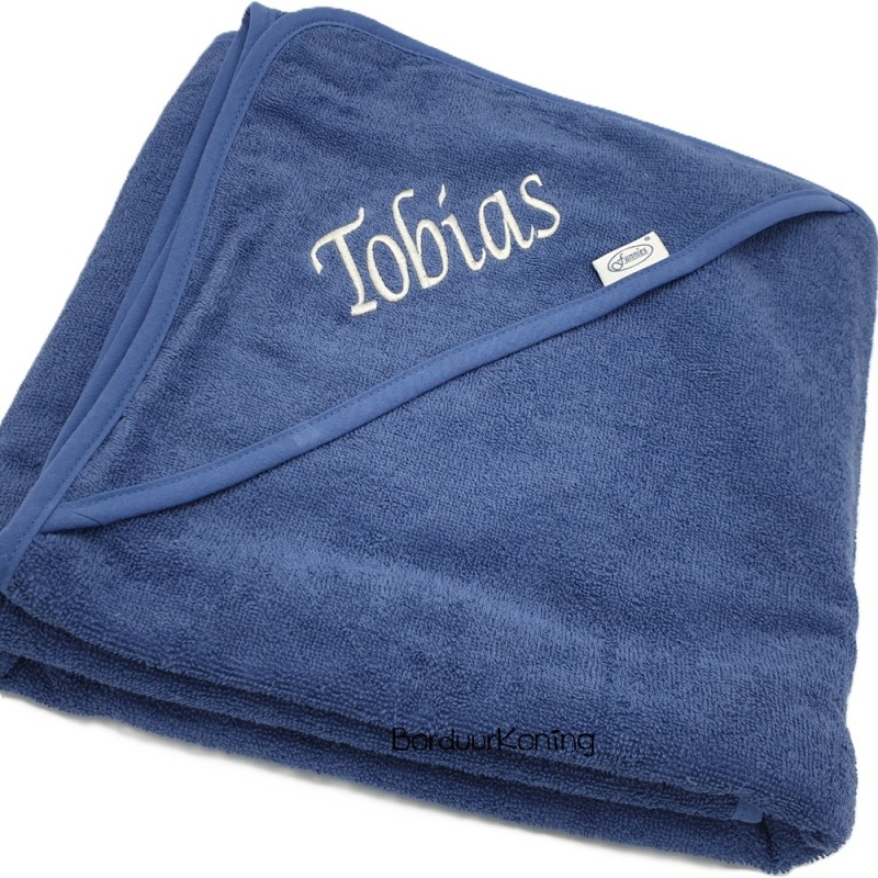 Badcape jeansblauw afmeting 100 x 100 cm losse verkoop of met borduurwerk.