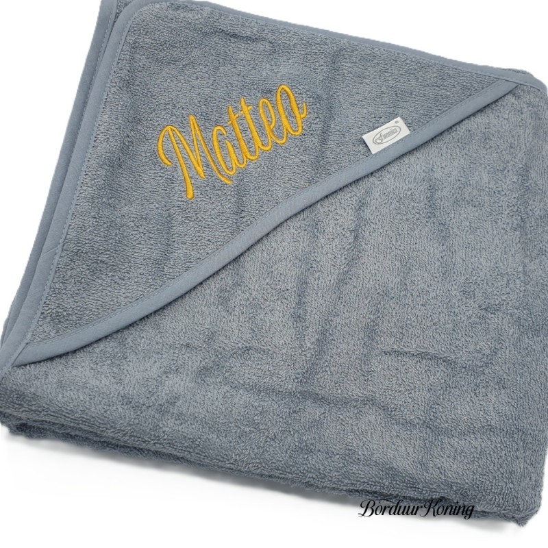 Badcape olifant-grijs afmeting 100 x 100 cm losse verkoop of met borduurwerk.