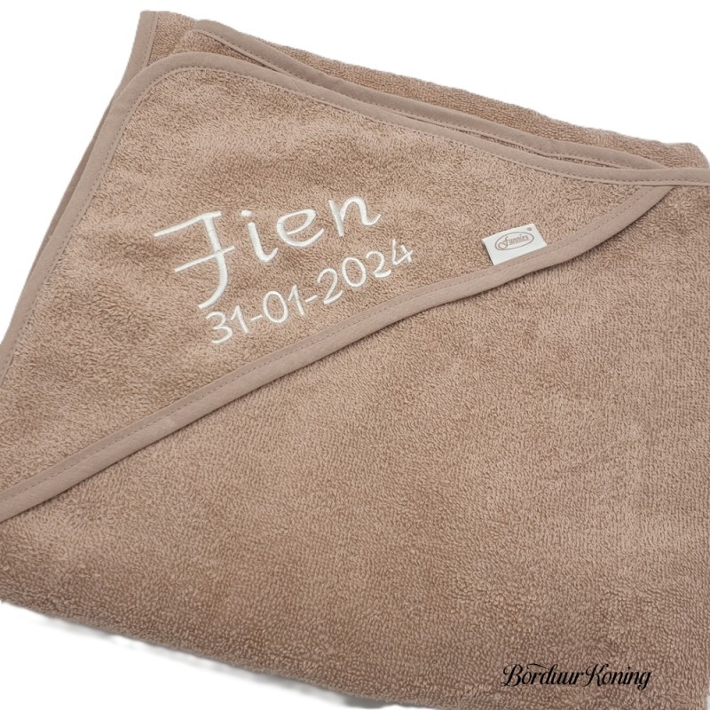 Badcape pinkstone afmeting 80 x 80 cm losse verkoop of met borduurwerk.