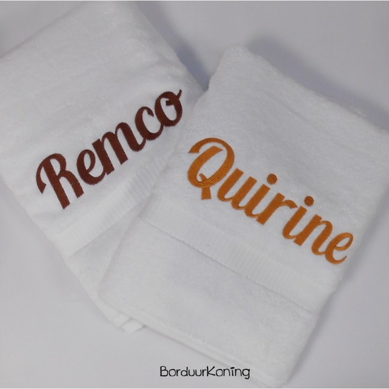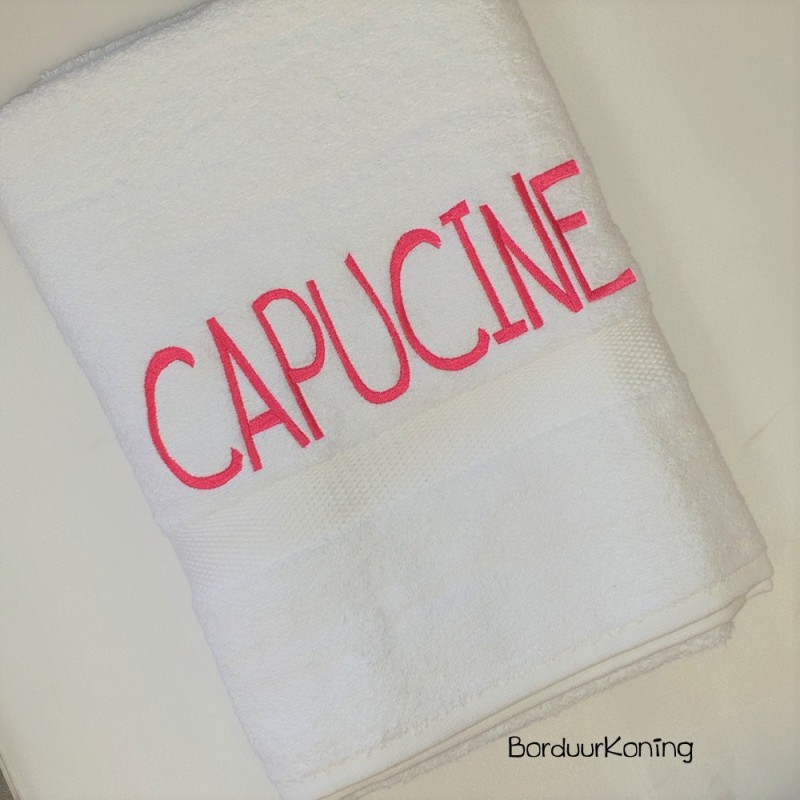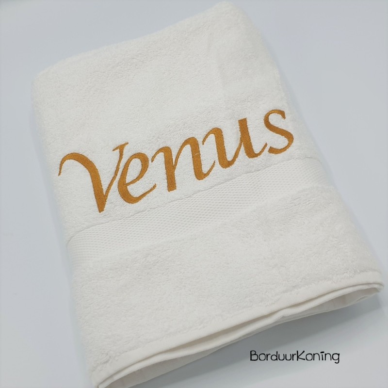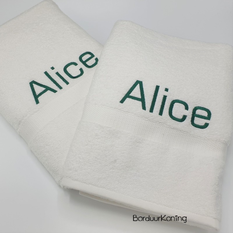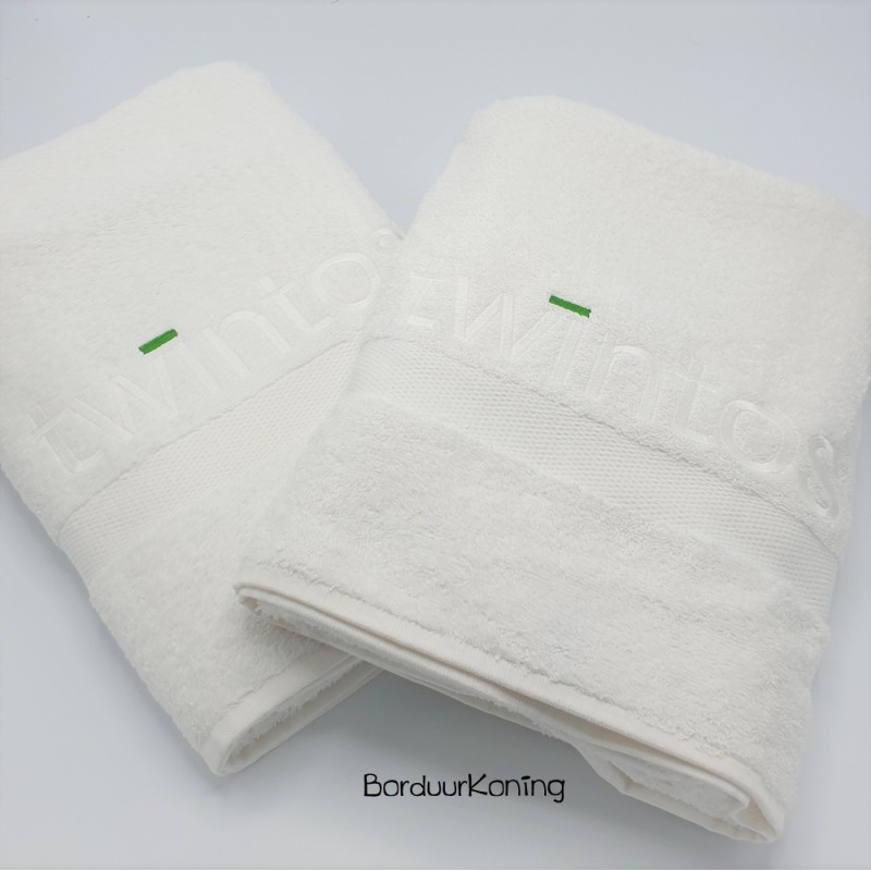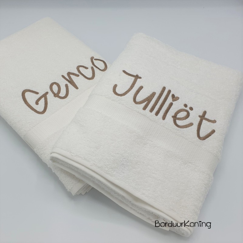 Douchelaken wit, afmeting 70 x 140 cm, inclusief borduurwerk (1 regel).