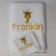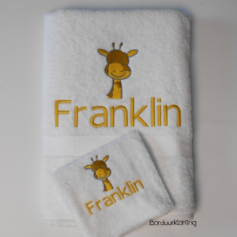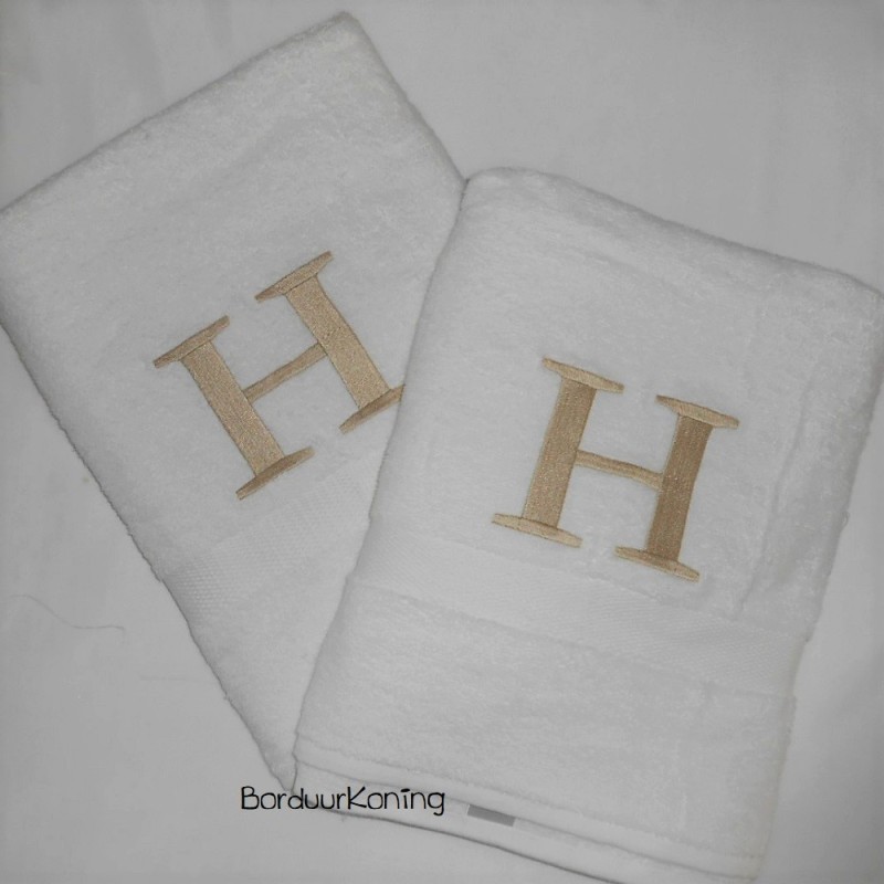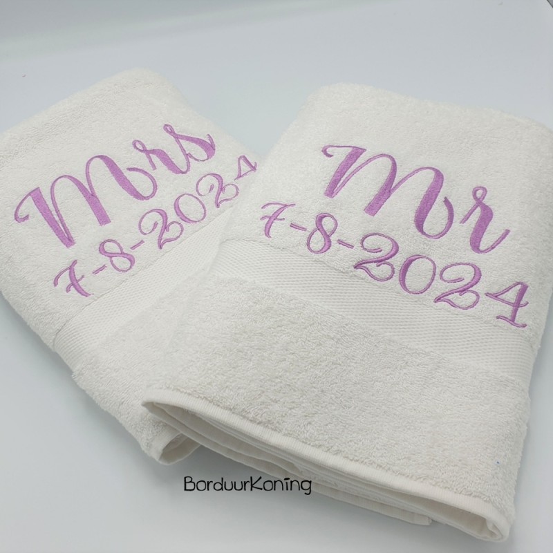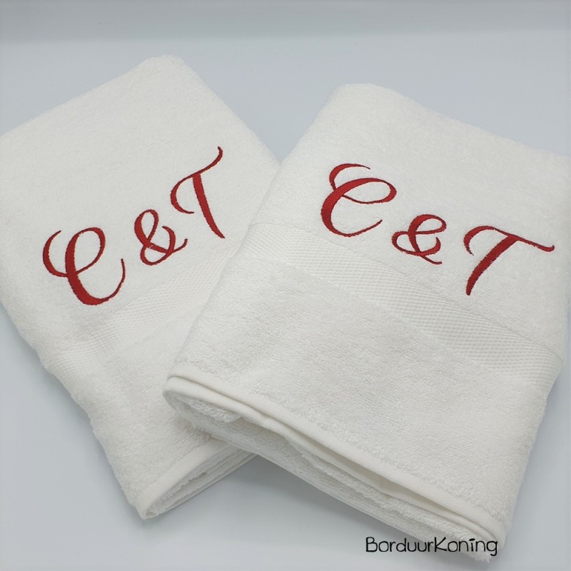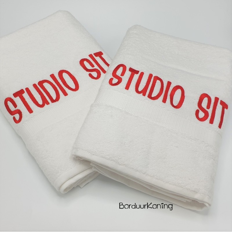 Douchelaken wit, afmeting 70 x 140 cm, inclusief borduurwerk (1 regel).