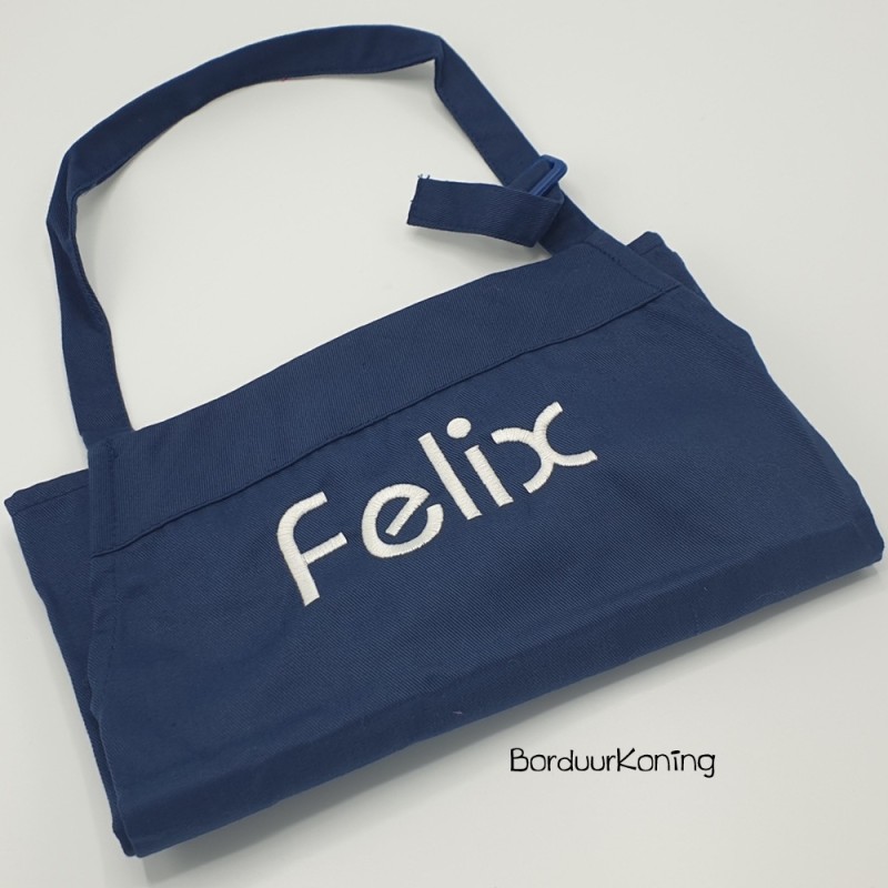 Naam of tekst wordt aan de bovenzijde geborduurd.