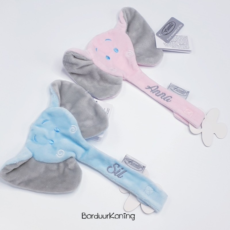 Naampje wordt klein op het slurfje geborduurd 5 cm breed.