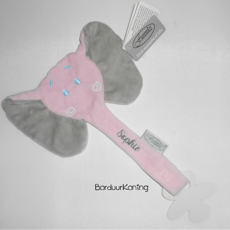 Speen olifantje roze  (21 x 17 cm), losse verkoop of met borduurwerk.