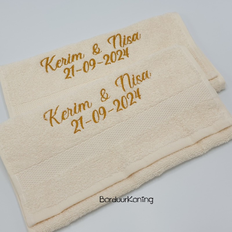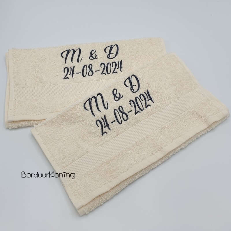 Gastendoek ecru afmeting 30 x 50 cm inclusief borduurwerk 1 regel.