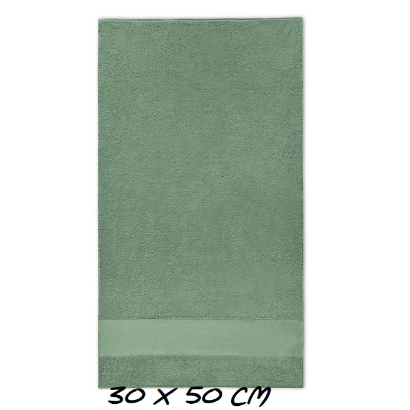 Golfhanddoek stonegreen afmeting 30 x 50 cm met ingeweven gladden rand van 7 cm breed.