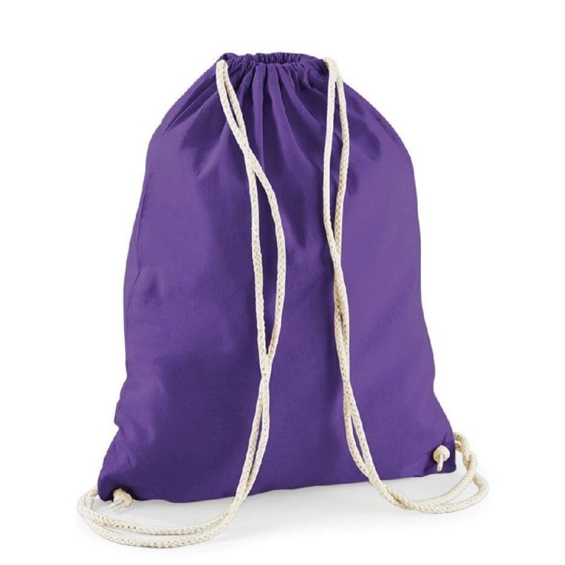 Gymtas van 100% katoen, sluiting met wit touwkoord.