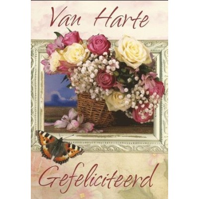 Wenskaart Van Harte Gefeliciteerd bloem vlinder motief