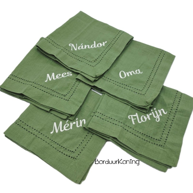 Servet borduren met naam of tekst deze wordt mooi in de punt geborduurd.