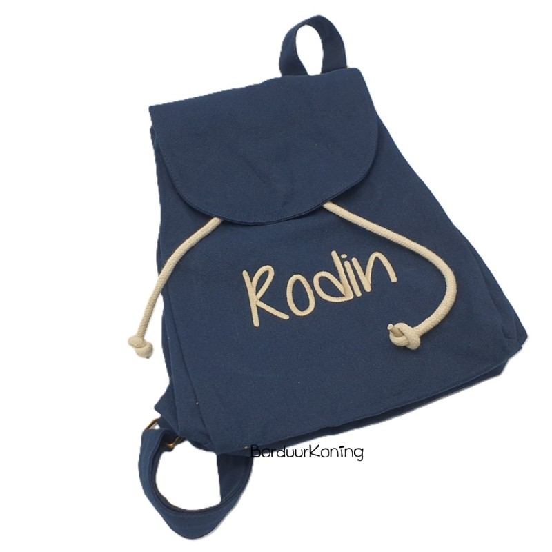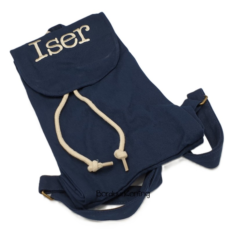 De zak sluiting is met een touwkoord, verstelbare schouderbanden in de zelfde kleur en stof