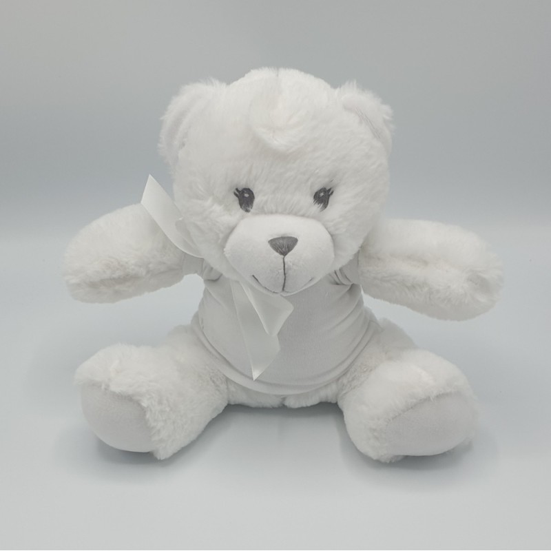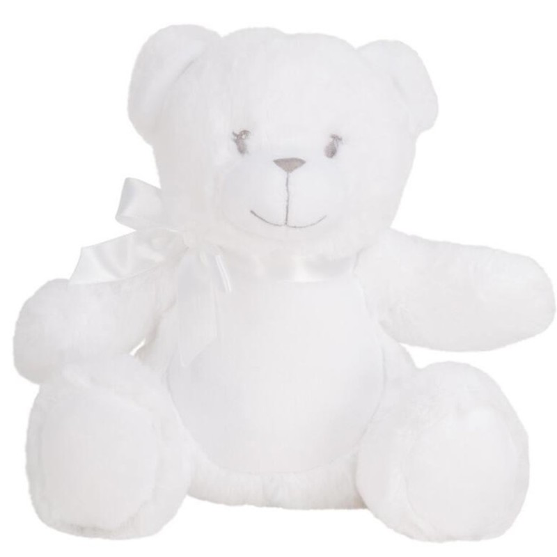 Knuffeltje beer wit is ongeveer 30 cm groot.