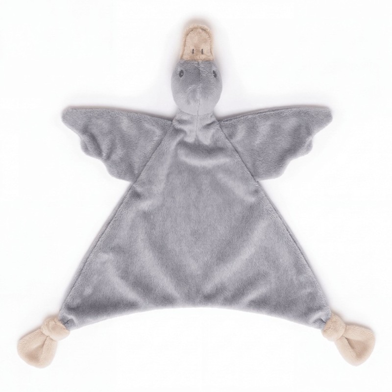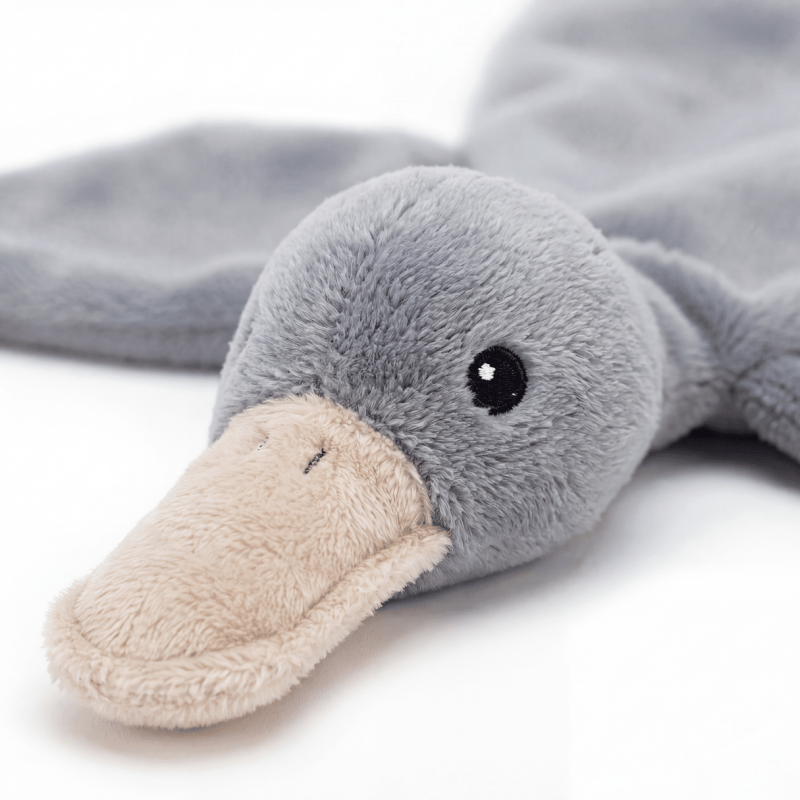 Knuffeldoekje eend pluche grijs met ecru kleur snavel en voetjes.