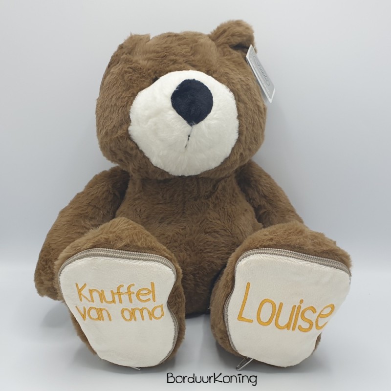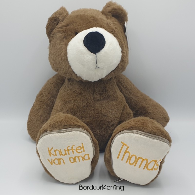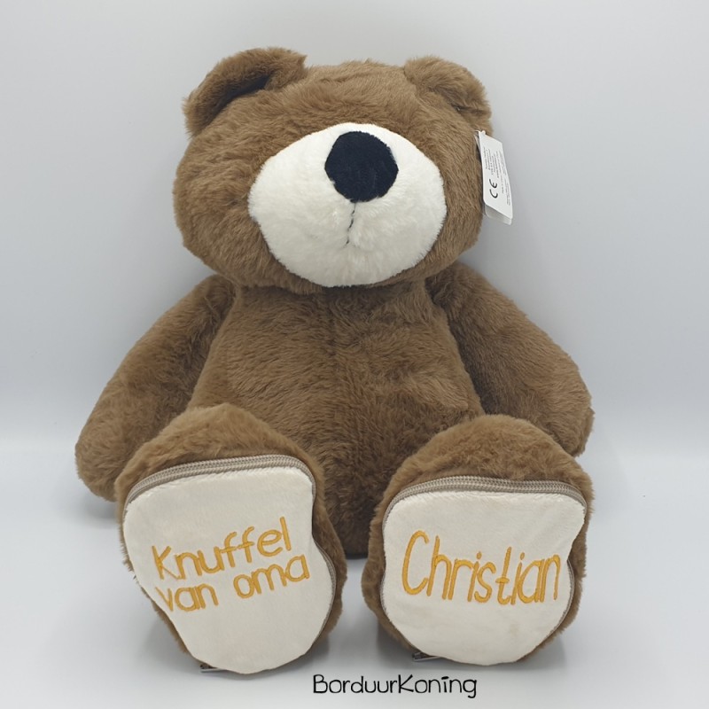 Knuffelbeer bruin met afneembare voetjes die gepersonaliseerd kunnen worden