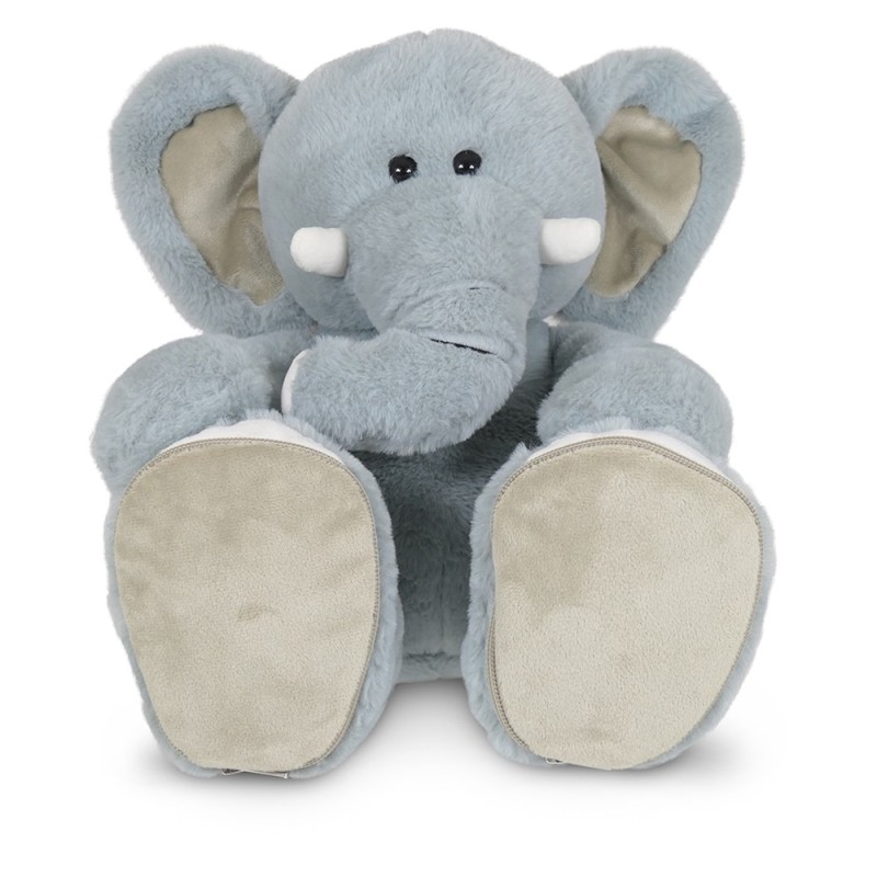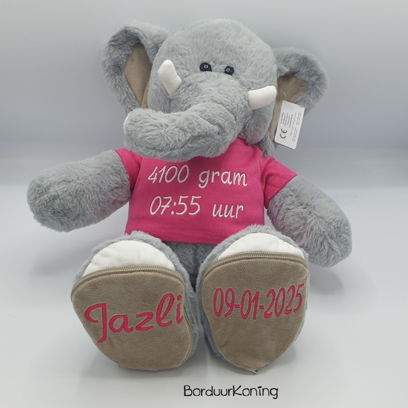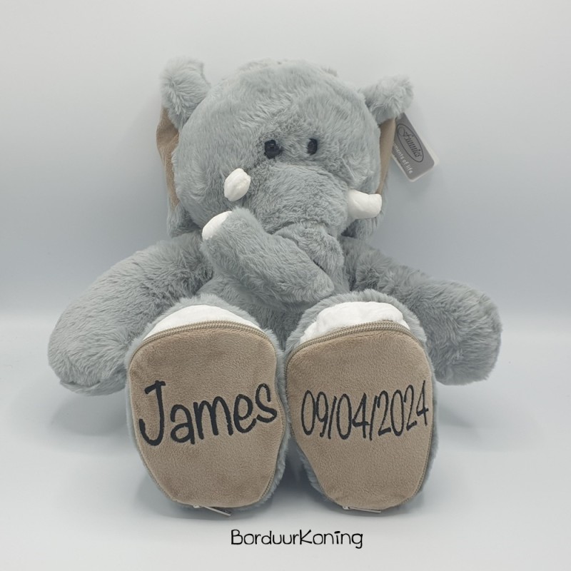 Hij heeft grijze/taupe voetjes waar op geborduurd kan worden.
