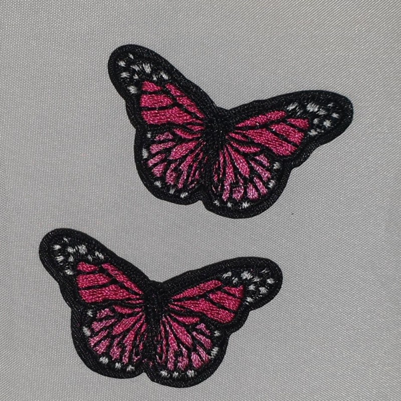 Applicatie vlinder zwart fuchsia 2 stuks kleuren zwart, fuchsia, roze en wit.
