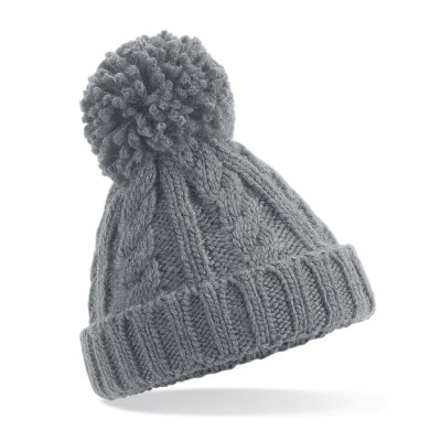 Winter muts grijs met 1 grijze pompon boven op