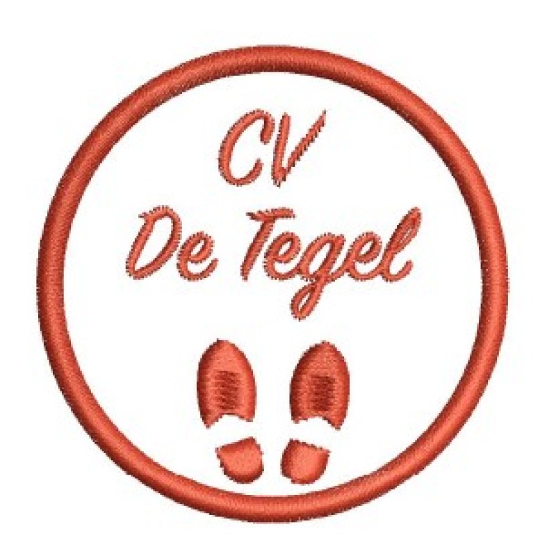 Badge 6 cm 10,- euro per stuk. witte badgestof rood geborduurd