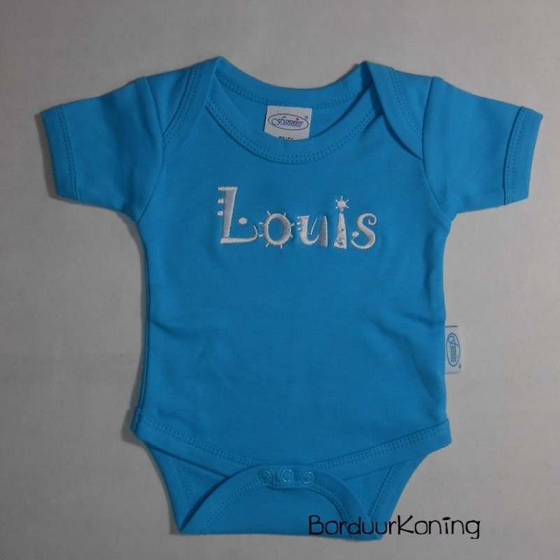 De romper heeft korte mouwen en onderzijde bevat drie drukknoopjes.