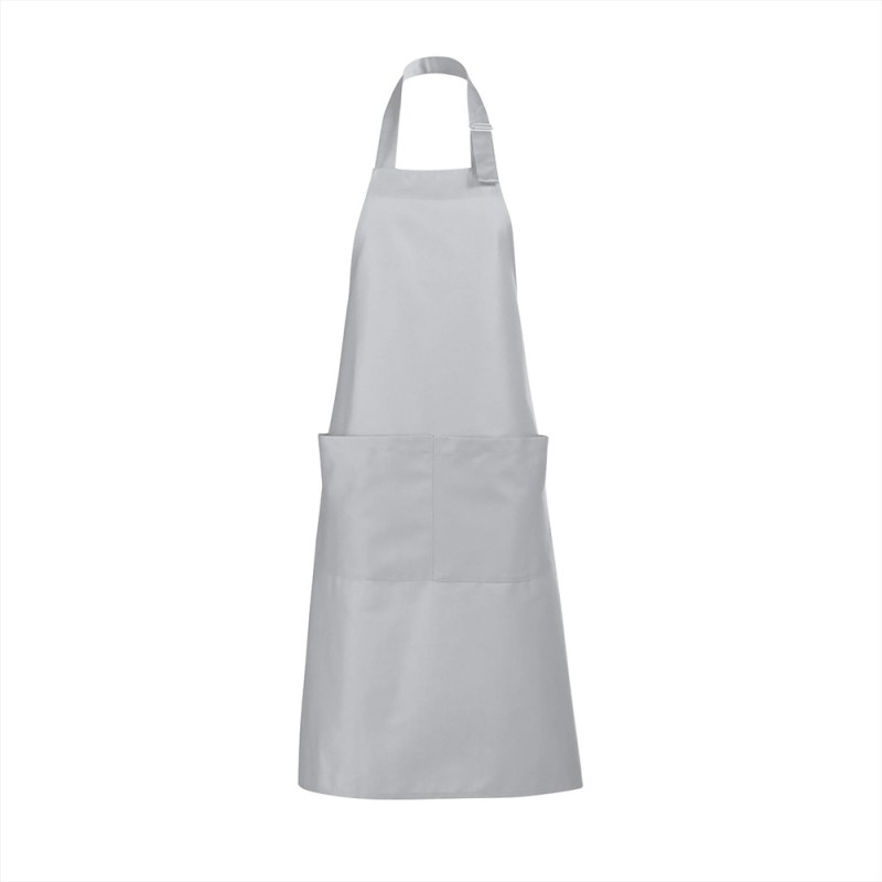 Schort grijs voor heren en dames 65% polyester en 35% katoen 240 g/m² en heeft 2 grote zakken aan voorkant.