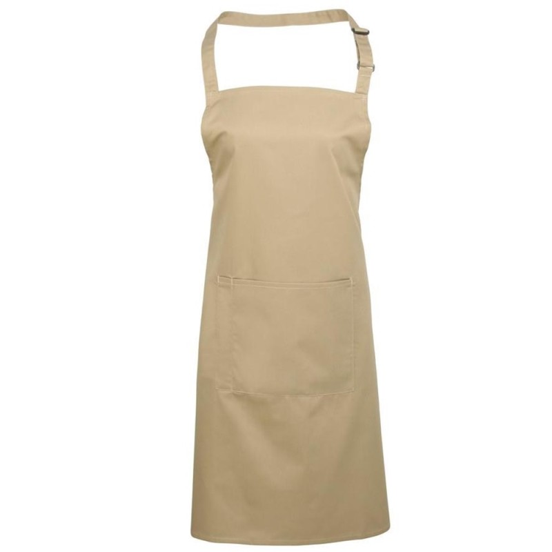 Schort khaki voor heren en dames, keukenschort met 1 grote zak aan de voorkant.