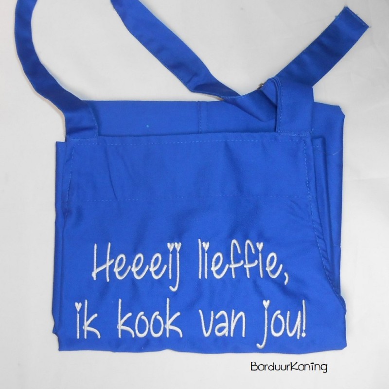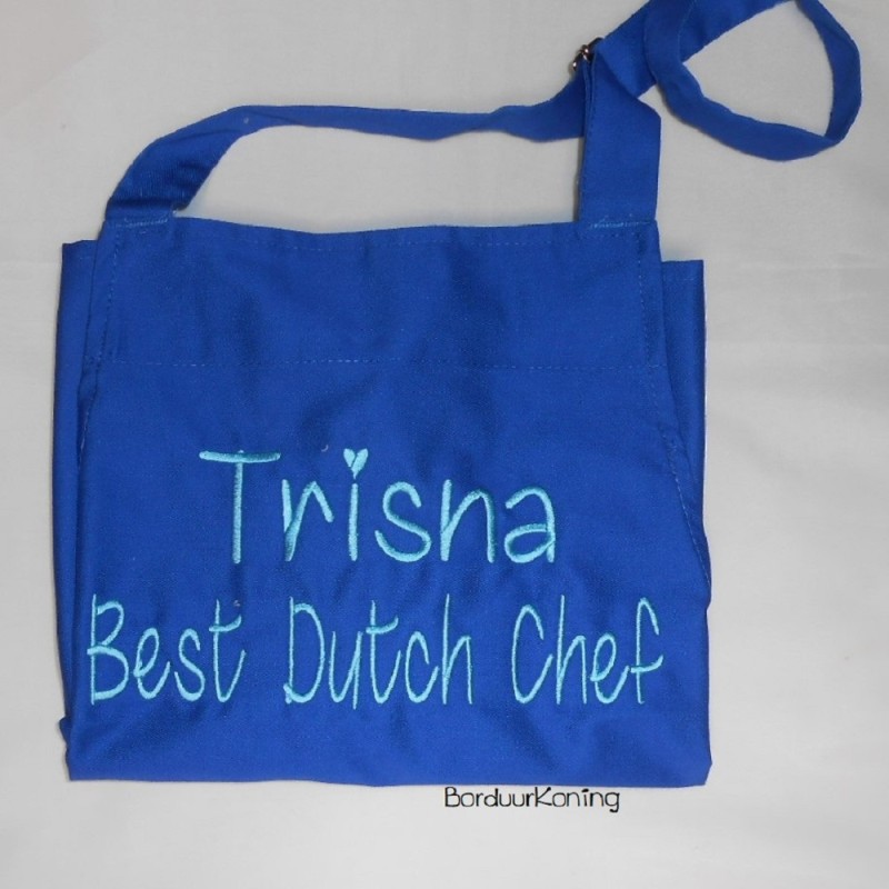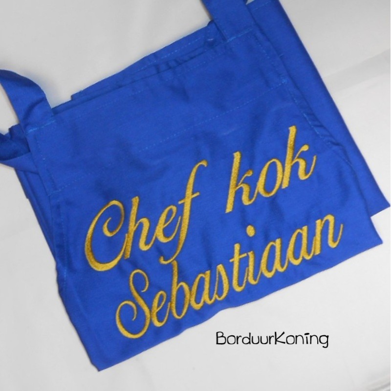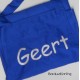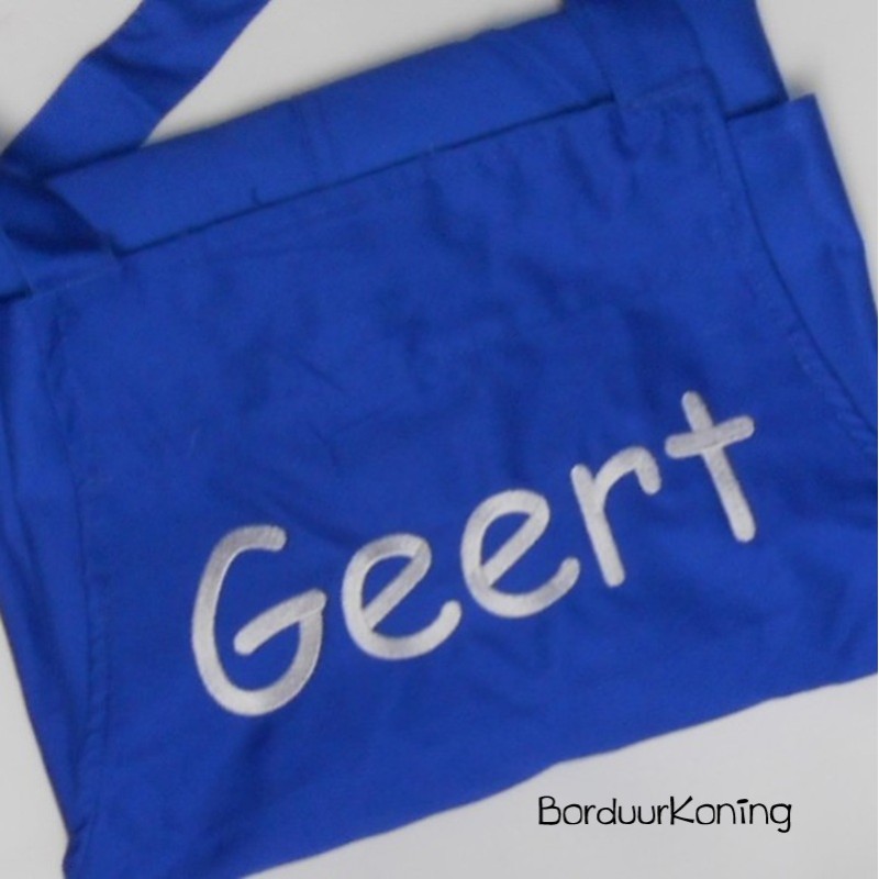 Naam of tekst wordt aan de bovenzijde geborduurd 20 cm breed.
