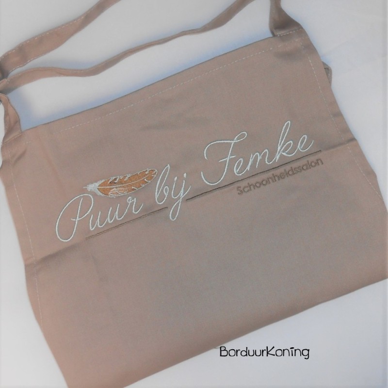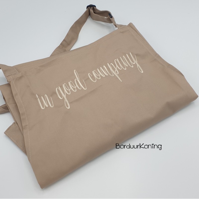 Naam of tekst wordt aan de bovenzijde geborduurd.