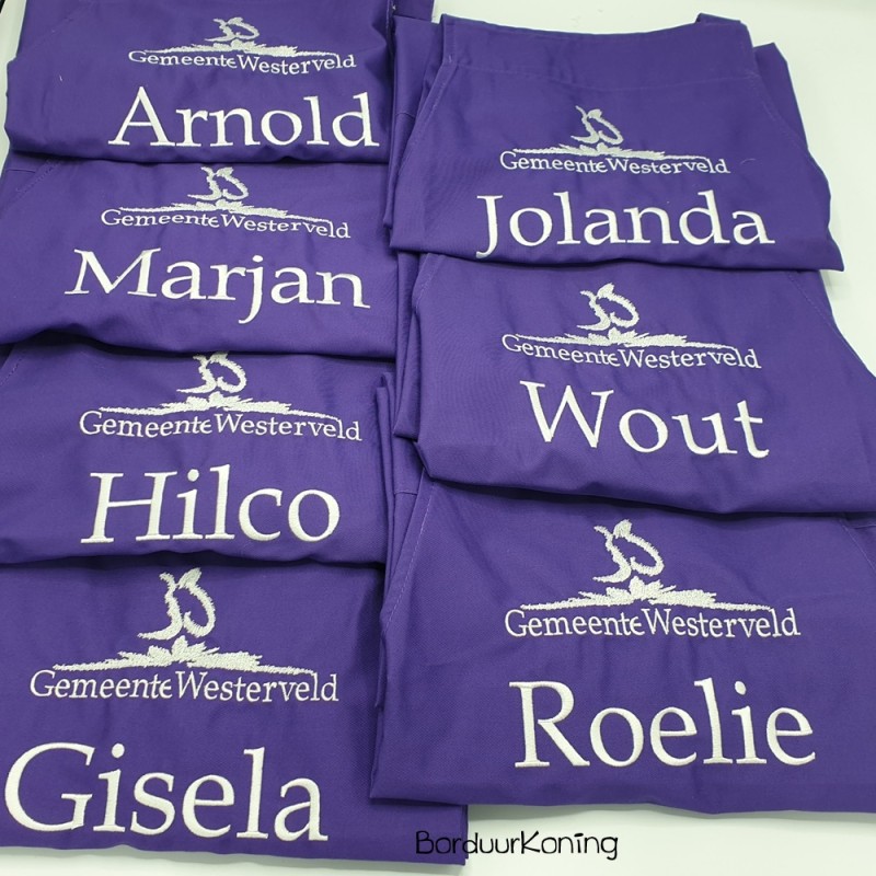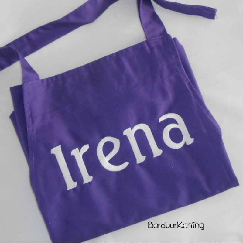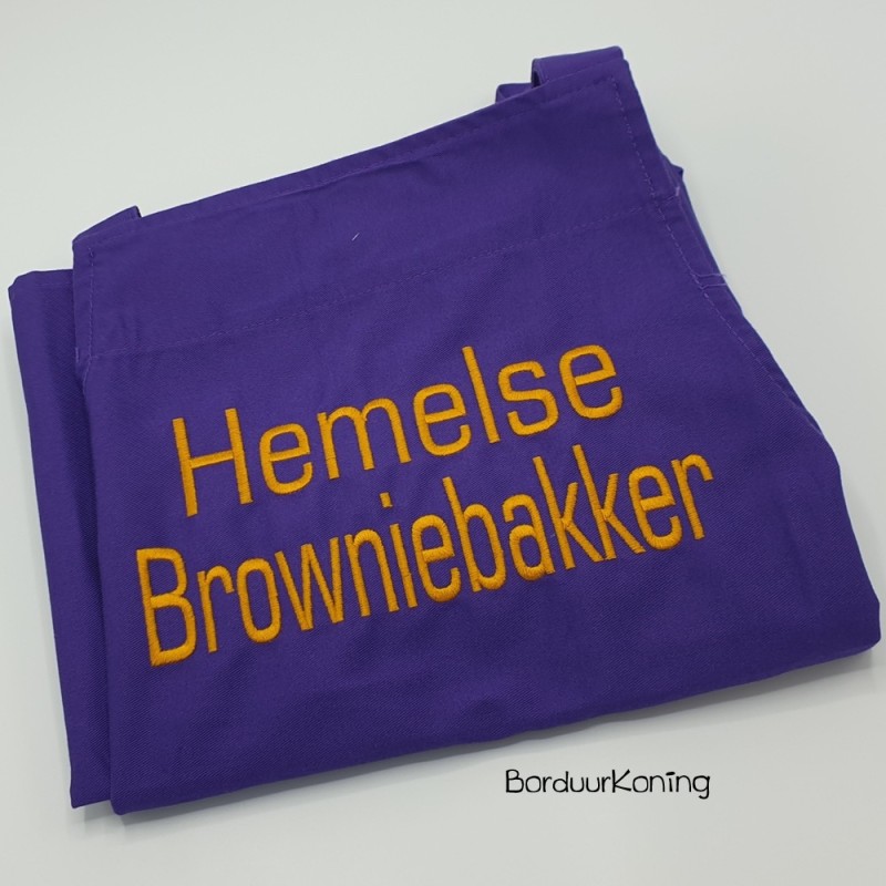 Naam of tekst wordt aan de bovenzijde geborduurd 20 cm breed.
