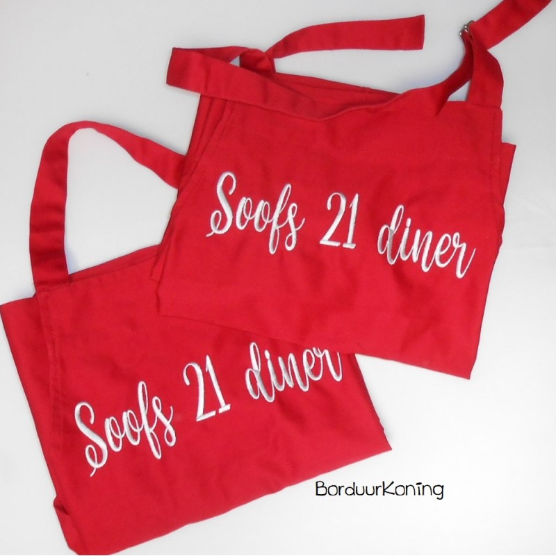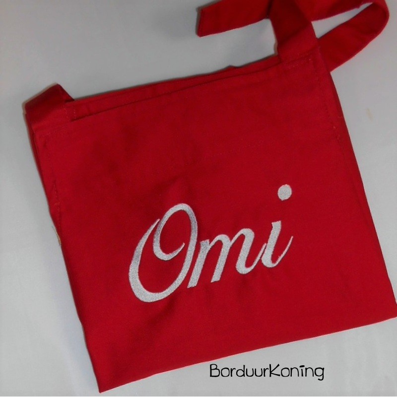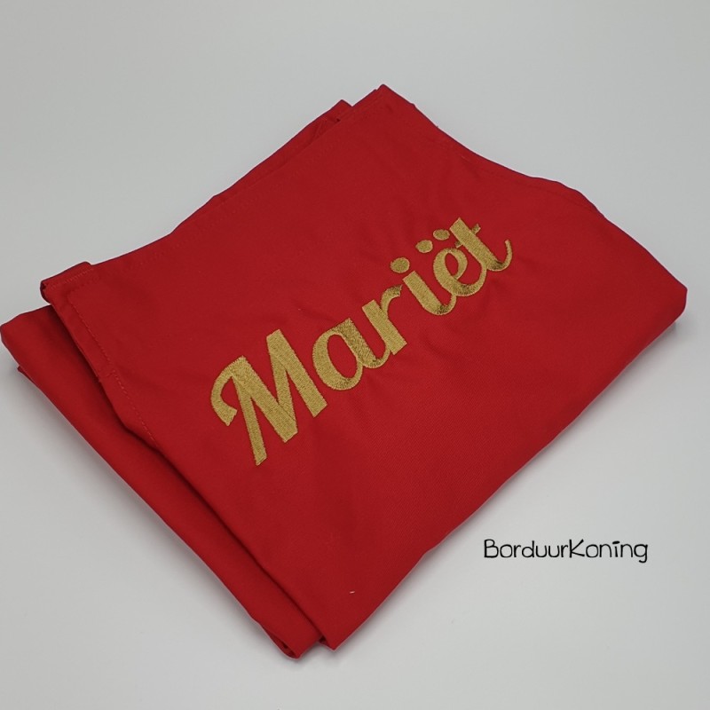 Naam of tekst wordt aan de bovenzijde geborduurd 20 cm breed.