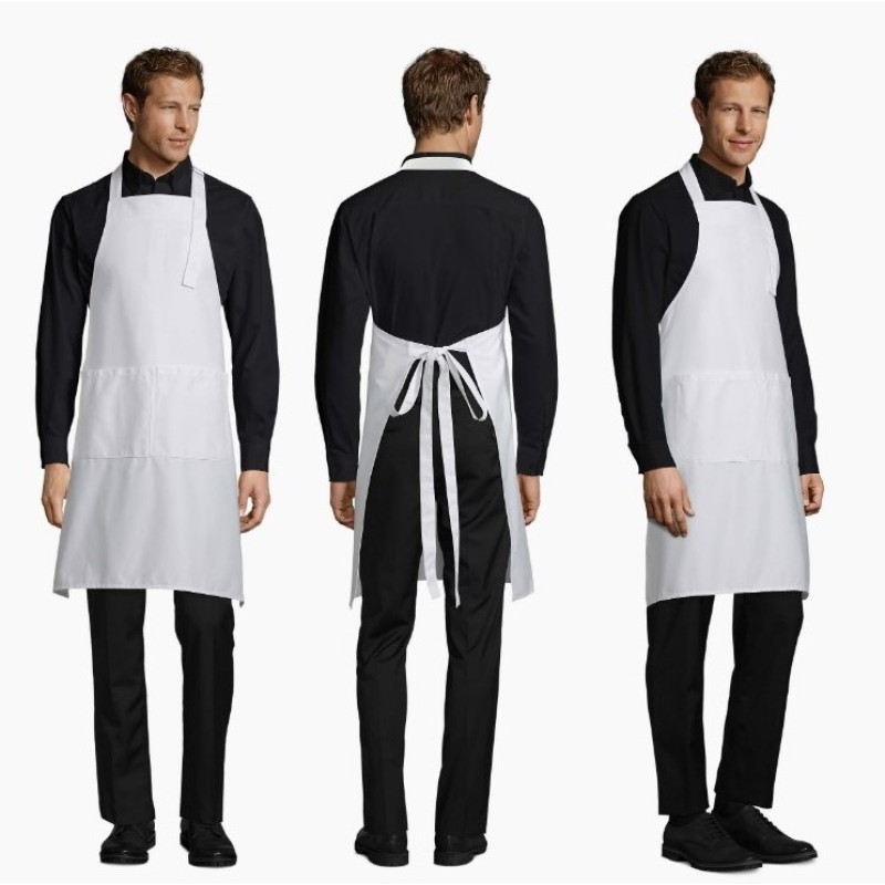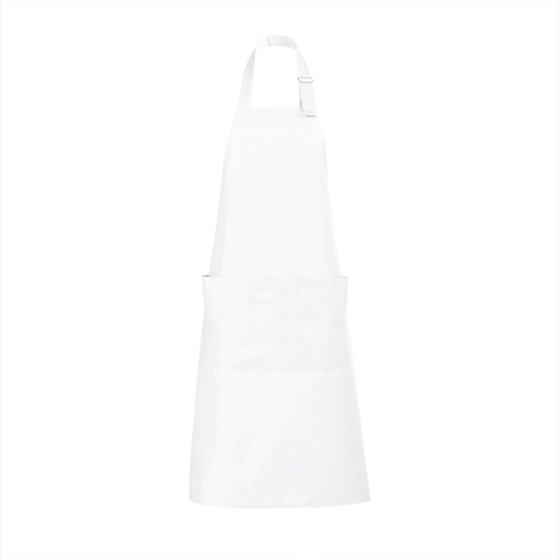 Schort wit voor heren en dames 65% polyester en 35% katoen 240 g/m² en heeft 2 grote zakken aan voorkant.