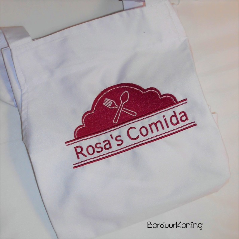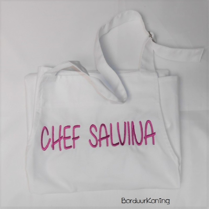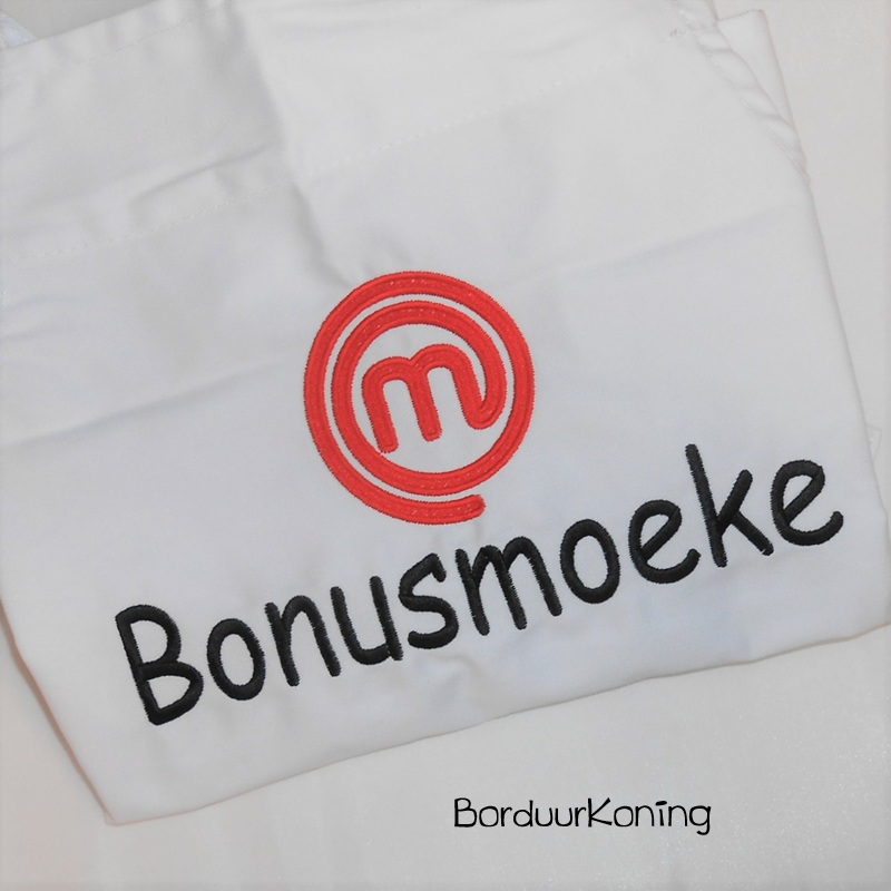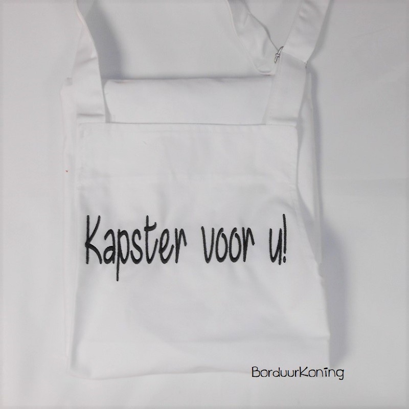 Naam of tekst wordt aan de bovenzijde geborduurd 20 cm breed.