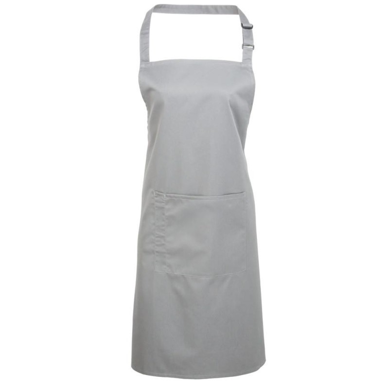 Schort zilver voor heren en dames, keukenschort met 1 grote zak aan de voorkant.