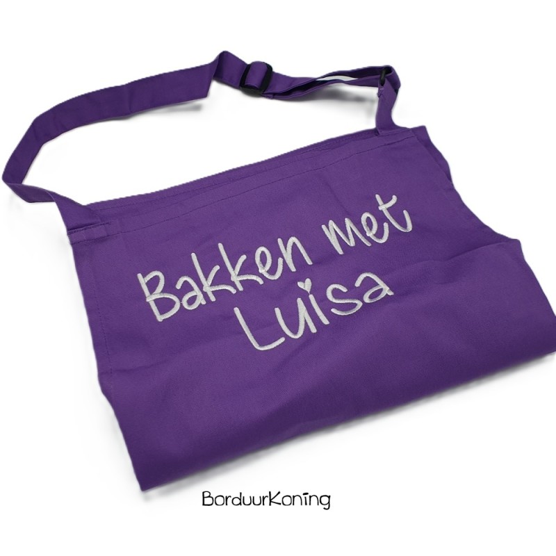 Naam of tekst wordt aan de bovenzijde geborduurd.