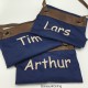 Naam of tekst wordt boven voorkant geborduurd 20 cm breed.