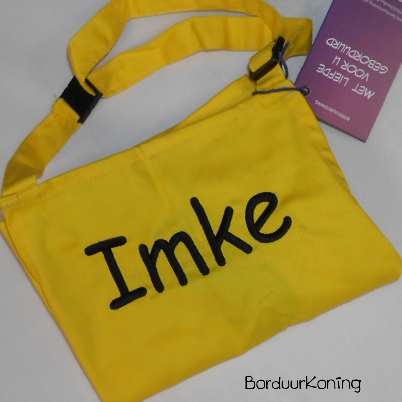 Naam of tekst wordt aan de bovenzijde geborduurd 12 cm breed.