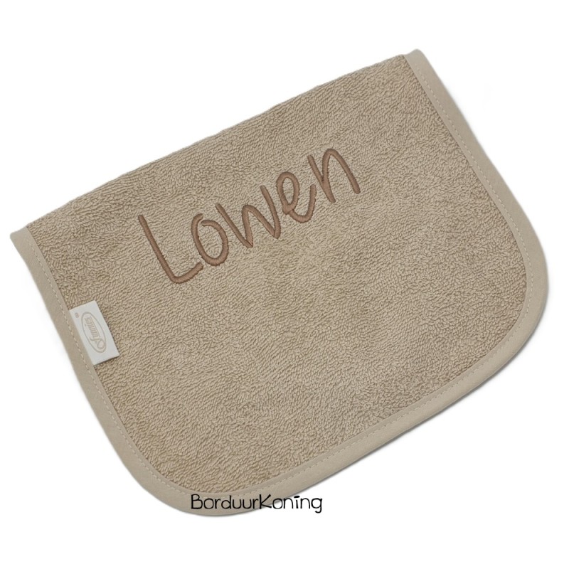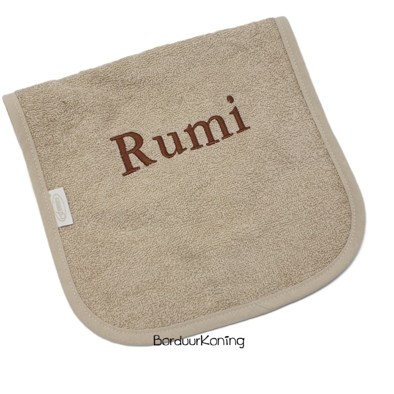 De slabber is los te verkrijgen of met naam tekst borduren.