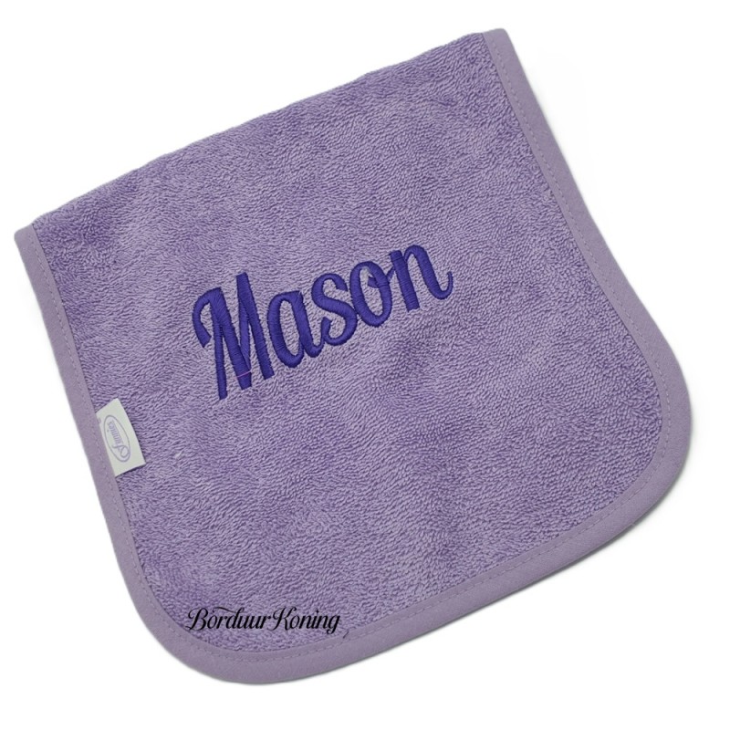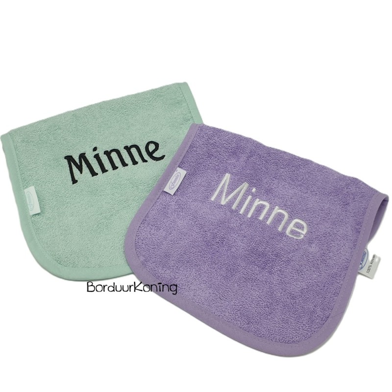 De slabber is los te verkrijgen of met naam tekst borduren.
