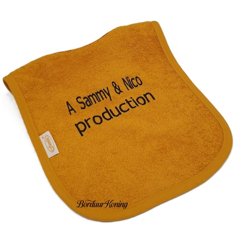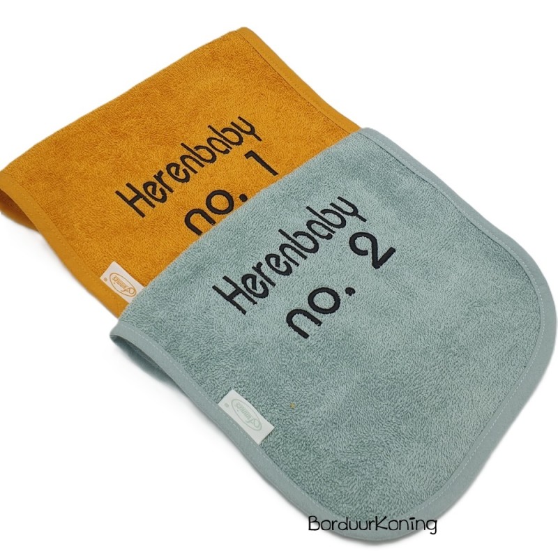 De slabber is los te verkrijgen of met naam tekst borduren.