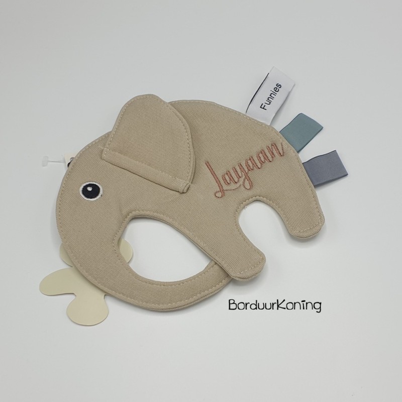 Speen olifant beige (15 x 15 cm), losse verkoop of met borduurwerk.