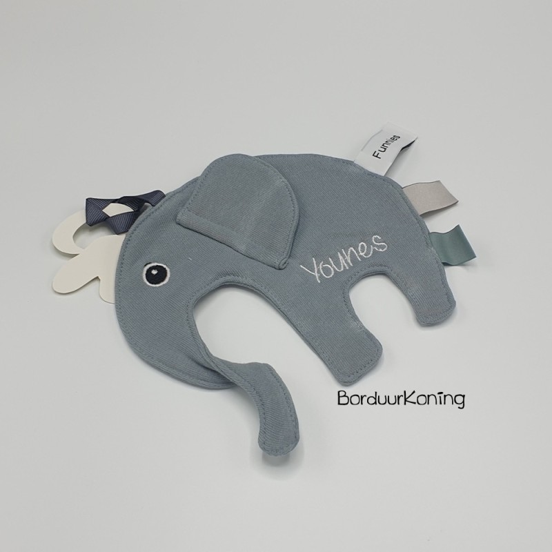Speen olifant-grijs (15 x 15 cm), losse verkoop of met borduurwerk.