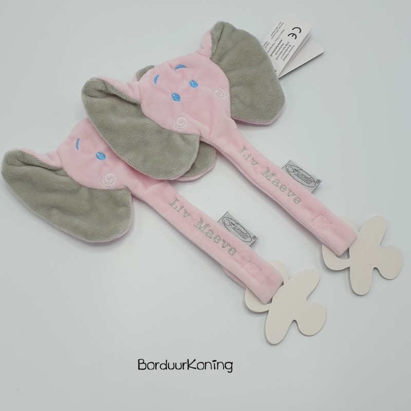 Speen olifantje roze (21 x 17 cm), losse verkoop of met borduurwerk.