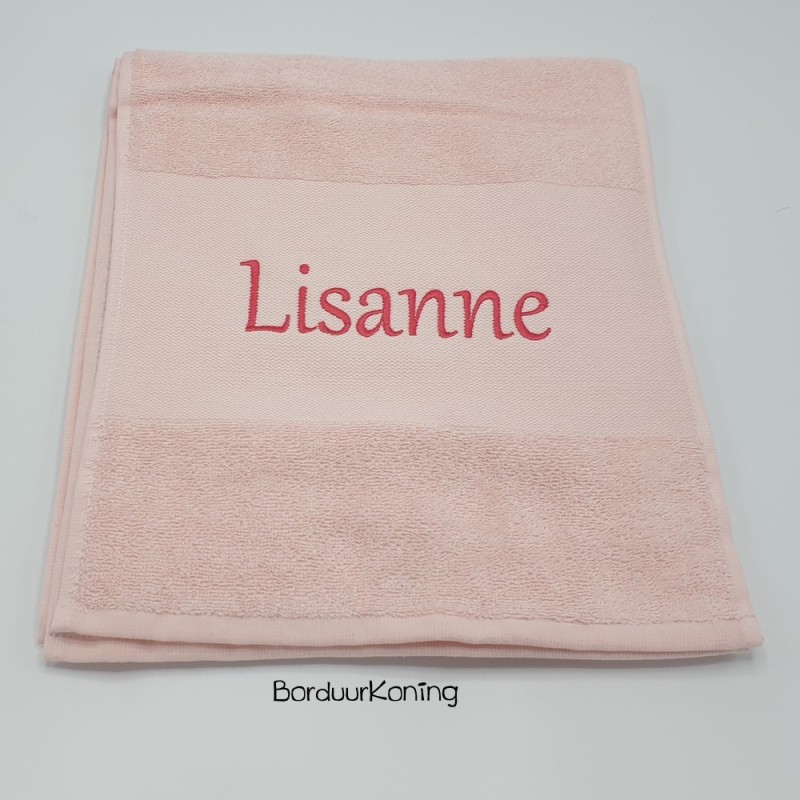 Sporthanddoek blush 30 x 140 cm met ingeweven gladden rand 15cm doek is van badstof inclusief borduurwerk (1 regel).