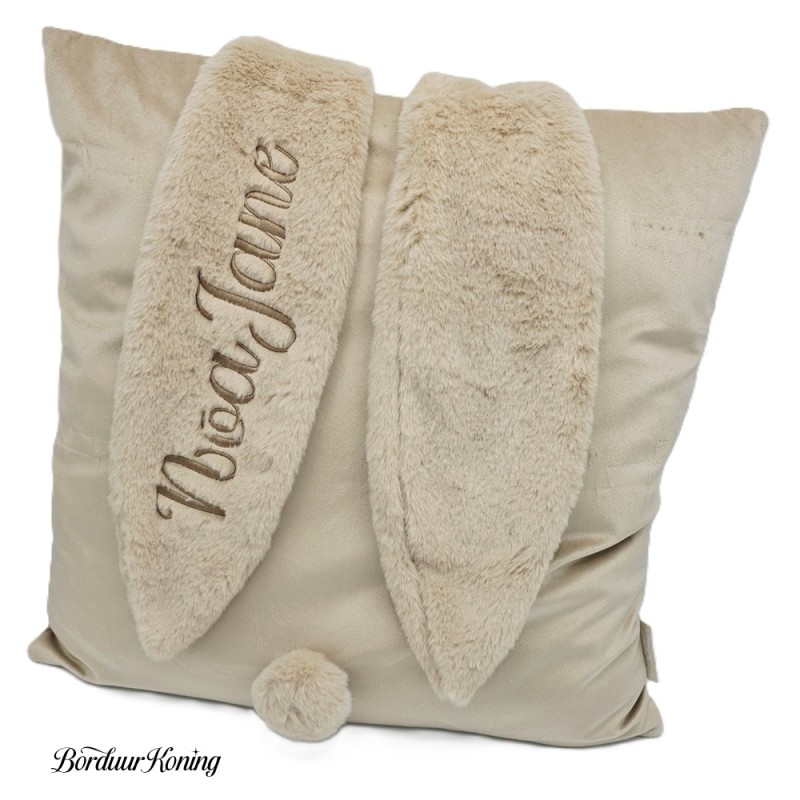 Super zachte kussen 45 x 45 cm groot, en beige van kleur.
